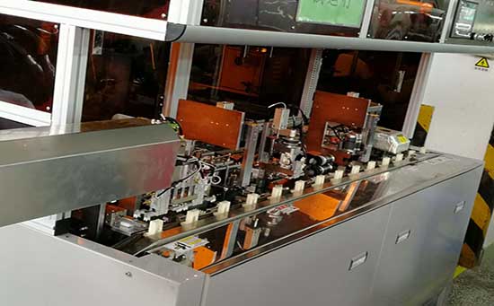 生產工藝:手動放線模組→加熱模組→剝皮模組→刷編織模組→分2股編織模組→分1股編織模組→扭編織模組→剪編織模組→反折編織模組→割鋁箔模組→脫鋁箔模組→自動取線